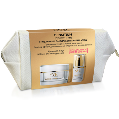 Денситиум Крем для лица 50мл банка: Денситиум крем специально разработан для зрелой кожи. Крем восстанавливает упругость кожи, уменьшает глубокие морщины. Благодаря биодоступной форме кальция средство регенерирует и поддерживает каркас кожи, уменьшает проявления старения. Увлажняющие свойства крема обеспечивают комфорт и удовольствие от использования. Роскошная шелковистая нелипкая текстура с приятным ароматом. Денситиум Уход для глаз и губ 15мл: Денситиум крем специально разработан для зрелой кожи вокруг глаз. Крем повышает упругость кожи, уменьшает глубокие морщины. Благодаря биодоступной форме кальция средство регенерирует и поддерживает каркас кожи. Сульфат декстрана уменьшает темные круги и отечность под глазами. После использования кожа выглядит более подтянутой и молодой. Роскошная бархатная нелипкая текстура с приятным ароматом.