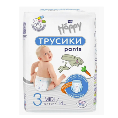 Хэппи Бэби подгузники-трусики д/детей 3/midi 6-11 кг №14