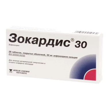 Cmax зофеноприлата в плазме крови достигается через 1.5 ч после приема Зокардиса. Связывание с белками плазмы крови для зофеноприла составляет 88%.