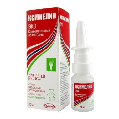Интраназально. Препарат Ксимелин Эко 35 мкг/доза - спрей для детей от 2 до 10 лет: по 1 впрыскиванию в каждый носовой ход; не следует применять более 3 раз в день. Препарат Ксимелин Эко 140 мкг/доза - спрей для взрослых и детей старше 10 лет: по 1 впрыскиванию в каждый носовой ход (при необходимости можно повторить); не следует применять более 3 раз в день. Препарат применяется не более 10 дней. (одно впрыскивание препарата Ксимелин Эко 35 мкг/доза содержит около 35 мкг ксилометазолина гидрохлорида; одно впрыскивание препарата Ксимелин Эко 140 мкг/доза содержит около 140 мкг ксилометазолина гидрохлорида).