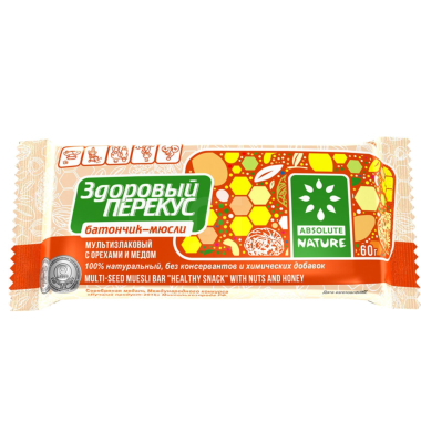МЮСЛИ - БАТОНЧИК С ОРЕХАМИ И МЕДОМ 60Г